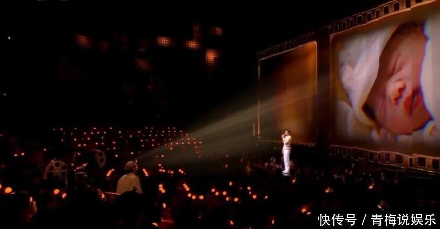 张艺谋导演亲手打造的舞美极其讲究,复古胶片的背景屏上,一幕幕放着孩子从小长大的黑白画面。