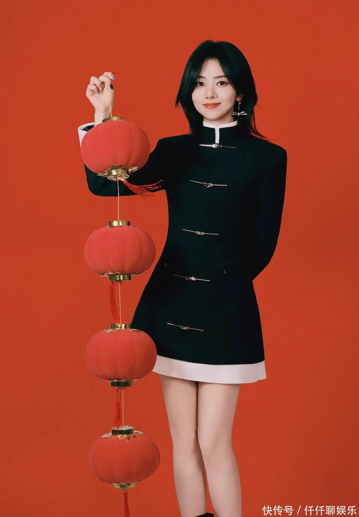 这一次,谭松韵的造型让人眼前一亮,不走寻常路,不是夸张的宫廷大礼服,也不是一水的红色旗袍,而是选择了一条结合新中式元素的短裙。裙子的设计吸引了不少网友的目光。虽然是短裙,但细节上加入了精美的手工盘扣和典雅的刺绣,既传统又时尚,既俏皮又不失高级感。这种搭配方式,算是打破春节穿搭套路的一次有趣尝试,尤其当谭松韵穿上这条短裙,笑起来眼睛弯弯的模样,真的让人心水到不行,有网友甚至直接表示:“有点像邻家妹妹提着小福袋来给我拜年的感觉,太治愈了!”