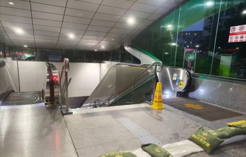 9月10日,有郑州网友拍摄到地铁口放置了防汛沙袋。